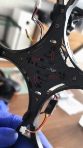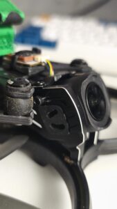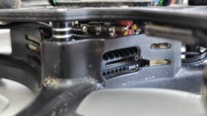 Co se týče VTX, je důležité ho namontovat vzhůru nohama, slot na SD kartu potom vychází na otvor v rámu, v opačném případě byste se nedostali ke slotu skrz plasty. Lehce zastřihněte kus plastu, aby karta šla ven.